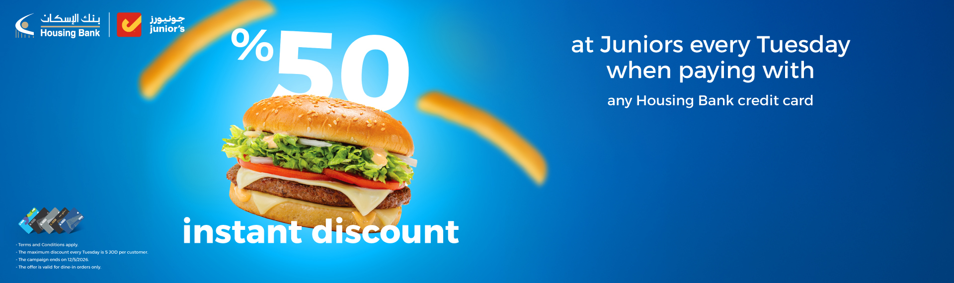 Housing Bank direct payment cards (Visa and MasterCard), where the amounts are deducted directly from your bank account and give you a wide range of benefits that are designed to suit all your needs at any time you want